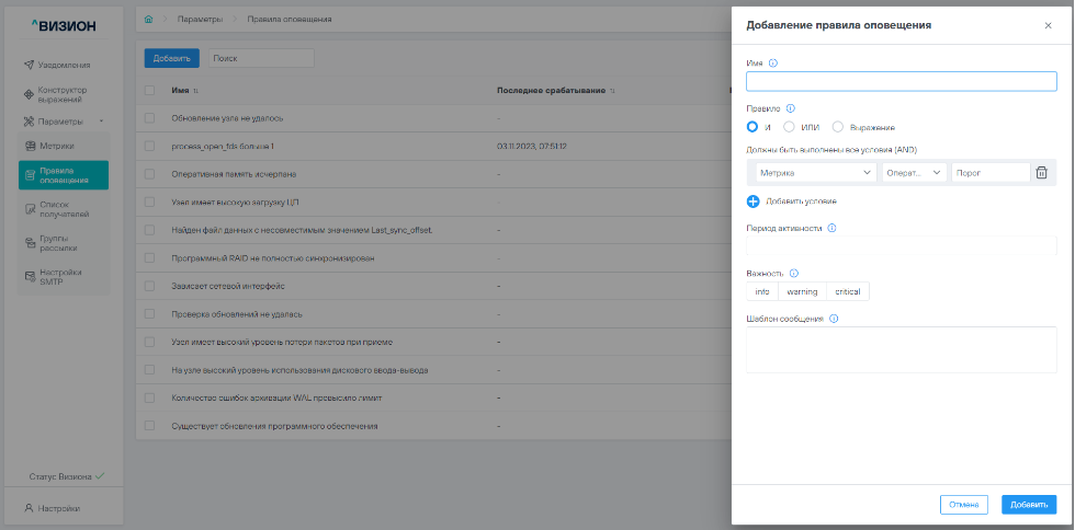 5.2.1 Добавление правила оповещения#