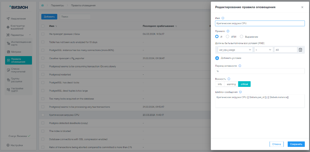 5.2.2.2 Редактирование правила оповещения#