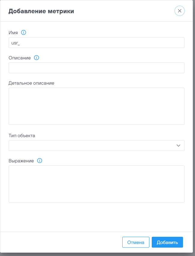 | Настройки - Метрики | Просмотр метрик, добавление пользовательских метрик |