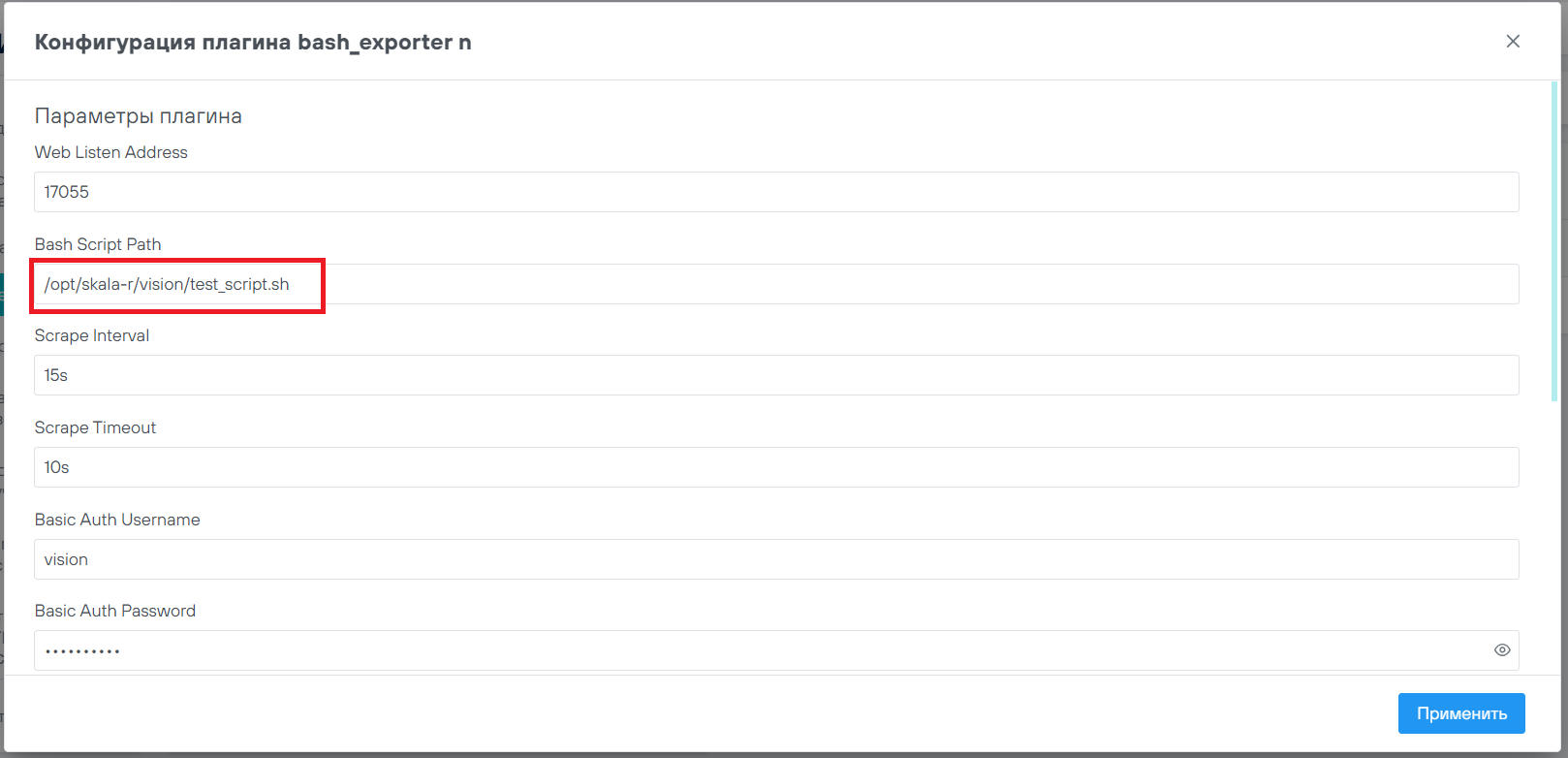 Сменить пароль в файле /opt/skala-r/etc/vision/server/victoriametrics_st/victoriametrics_st.yml в поле password у job_name: victoriametrics_st.