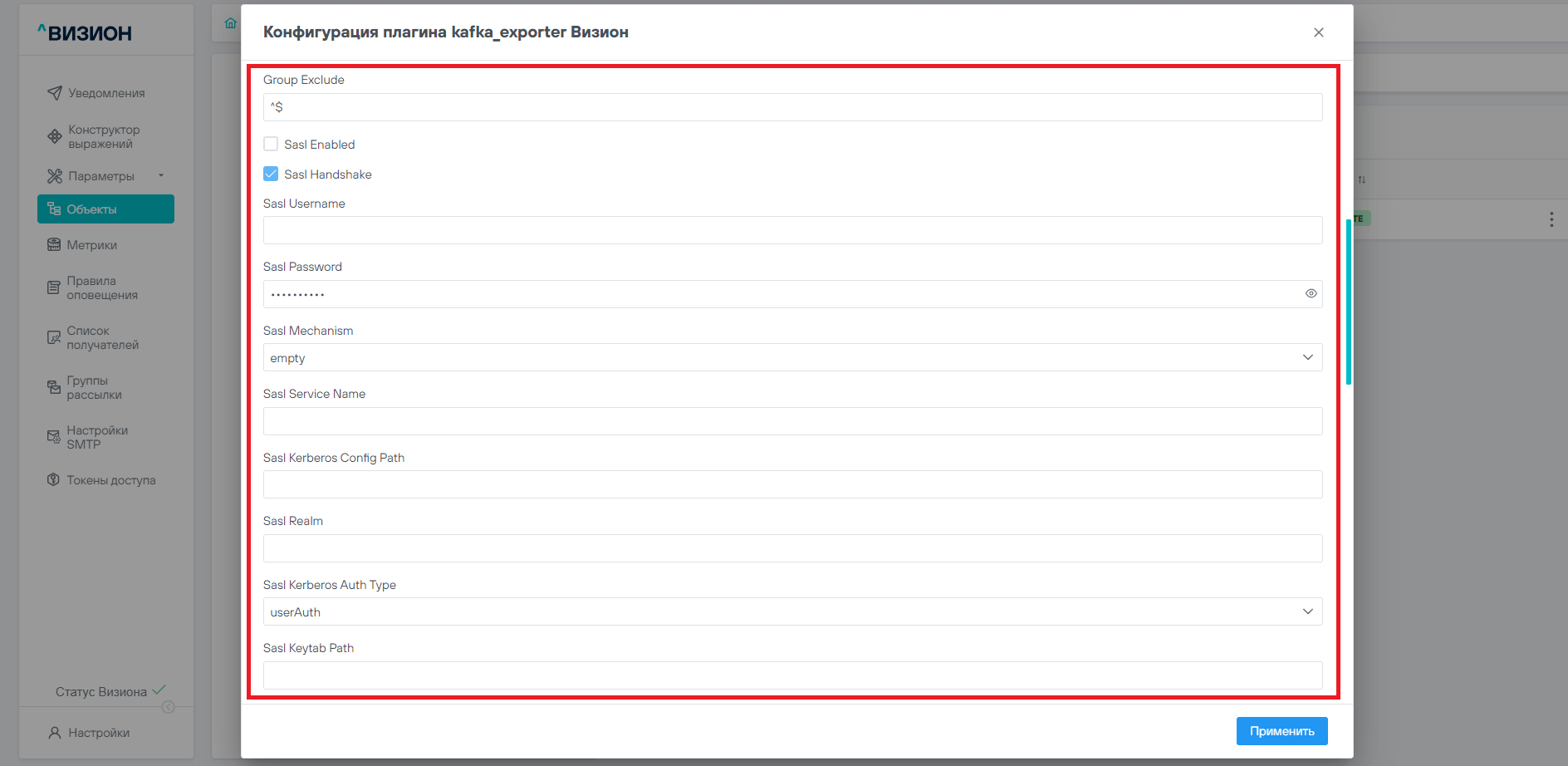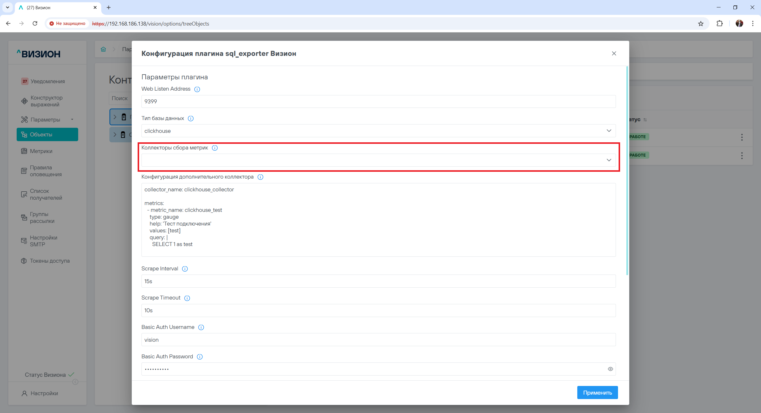 17.6 Смена пароля для vision_alertcollector#