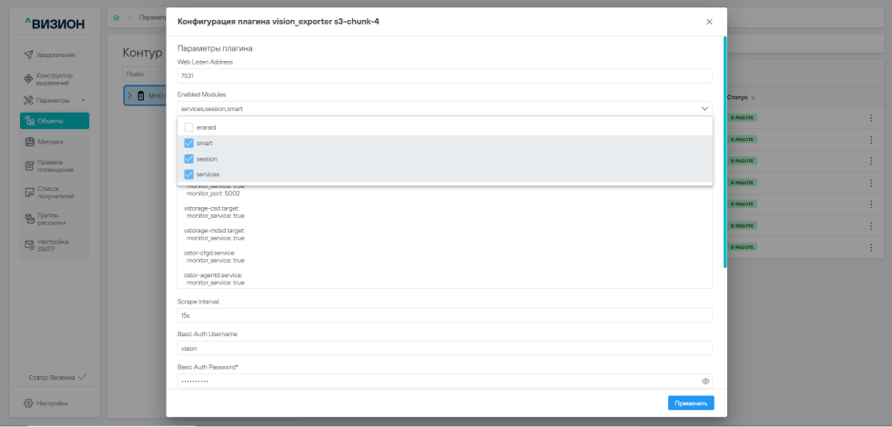 • freeipmi (если предполагается присутствие плагина ipmi на узле, как правило, это ВМ Визиона на служебном узле)
