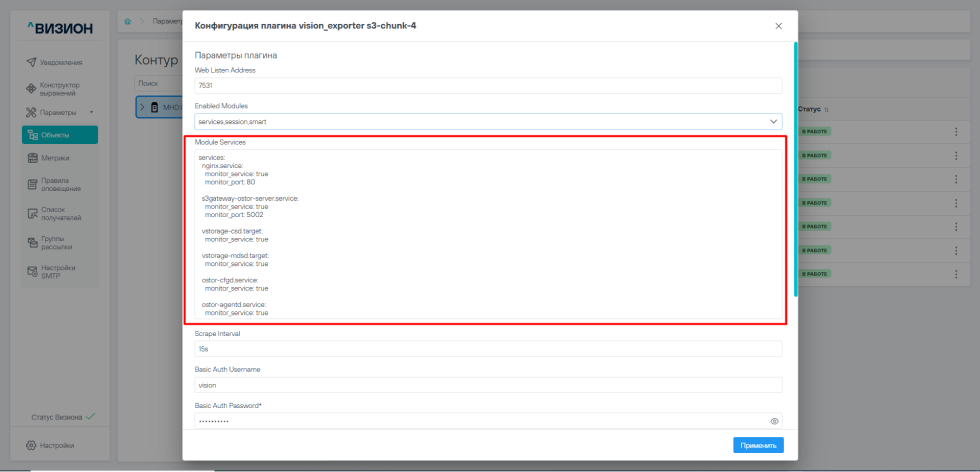 Произвести перезагрузку компонентов victoriametrics_st, vmalert_st, vision_core, vision_utilizer путем выполнения следующих команд: