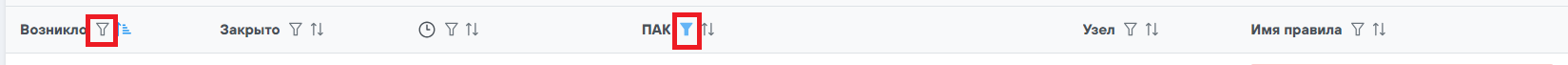 Список уведомлений может быть отфильтрован с помощью задания параметров фильтрации для любой колонки. Для этого необходимо нажать на иконку фильтра в заголовке колонки: