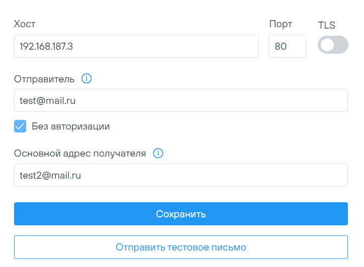 Настройки - настройки SMTP Настройка SMTP подключения